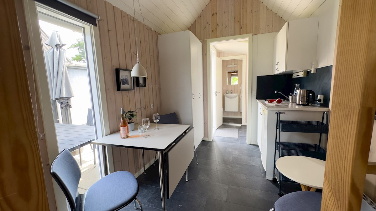 Fjordhytten har en soveafdeling med enten 3/4 seng eller 2 enkeltsenge. (skriv evt. senge ønske i bemærkning)